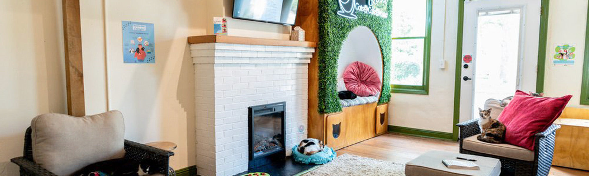 Enjoy coffee, treats & purr therapy while you unwind with adorable furry companions.