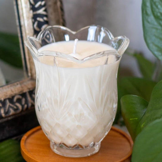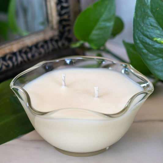 Ruffle Scalloped Edge Glass Bowl Vintage Vessel Candle