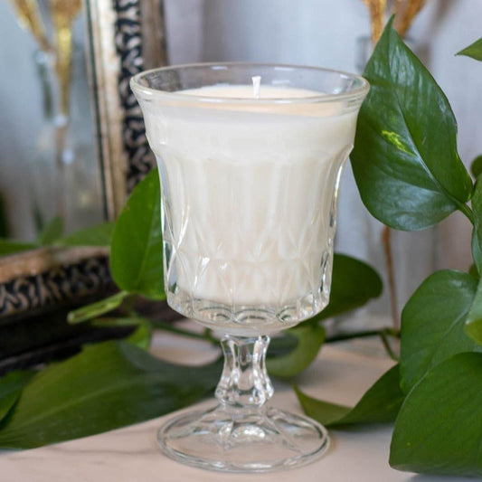 Vintage Cut Glass Diamond Pattern Goblet Vintage Vessel Candle