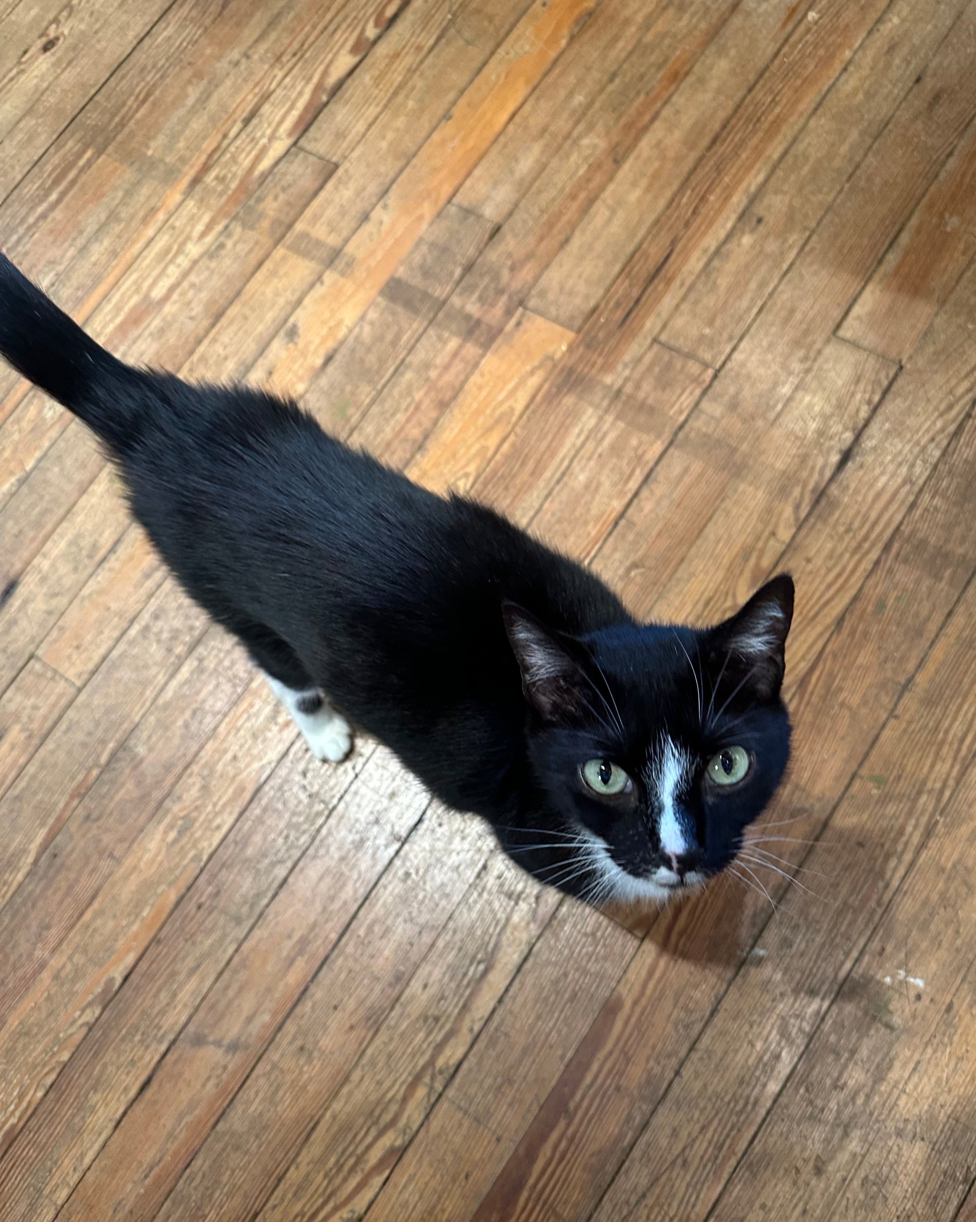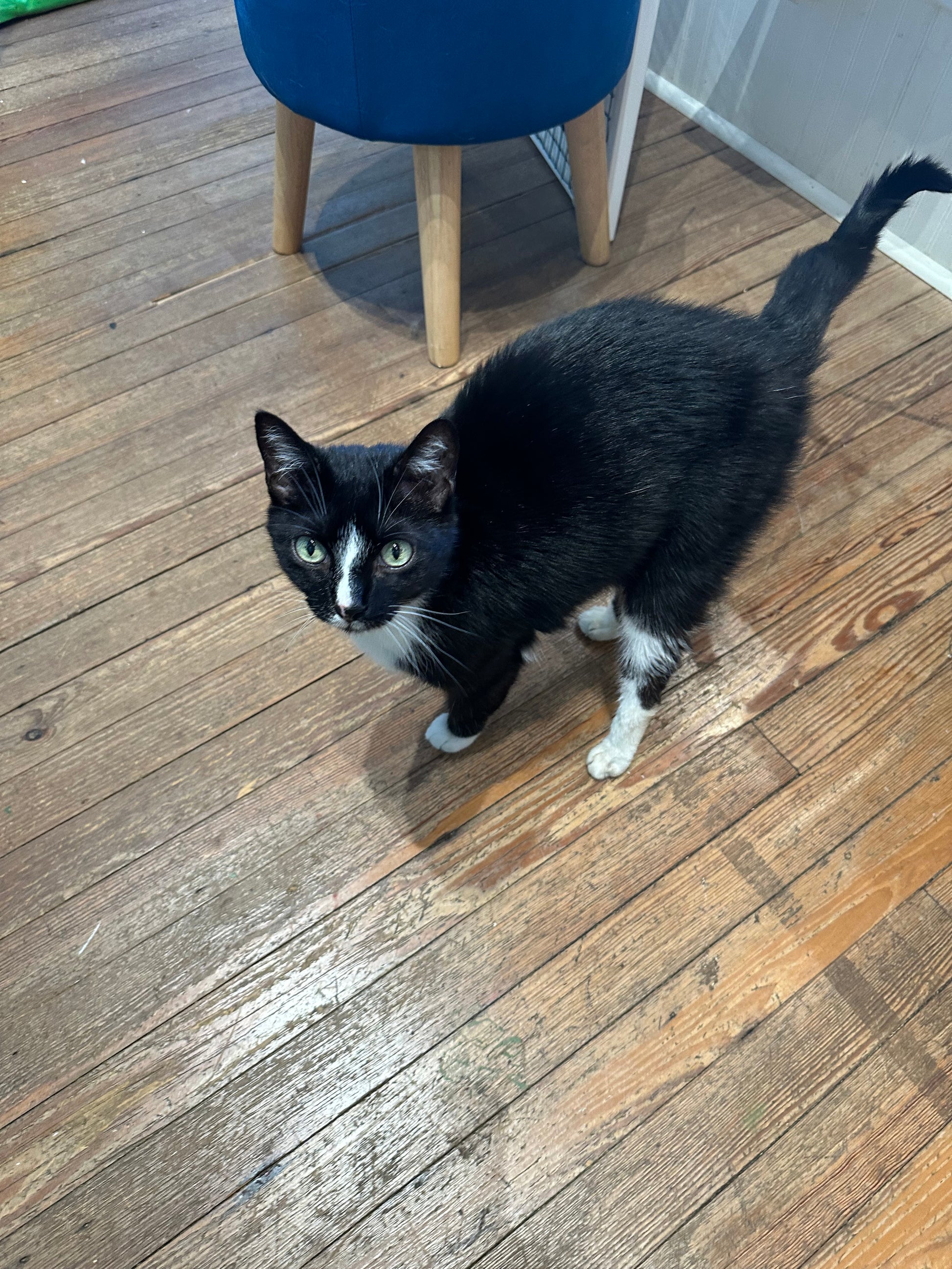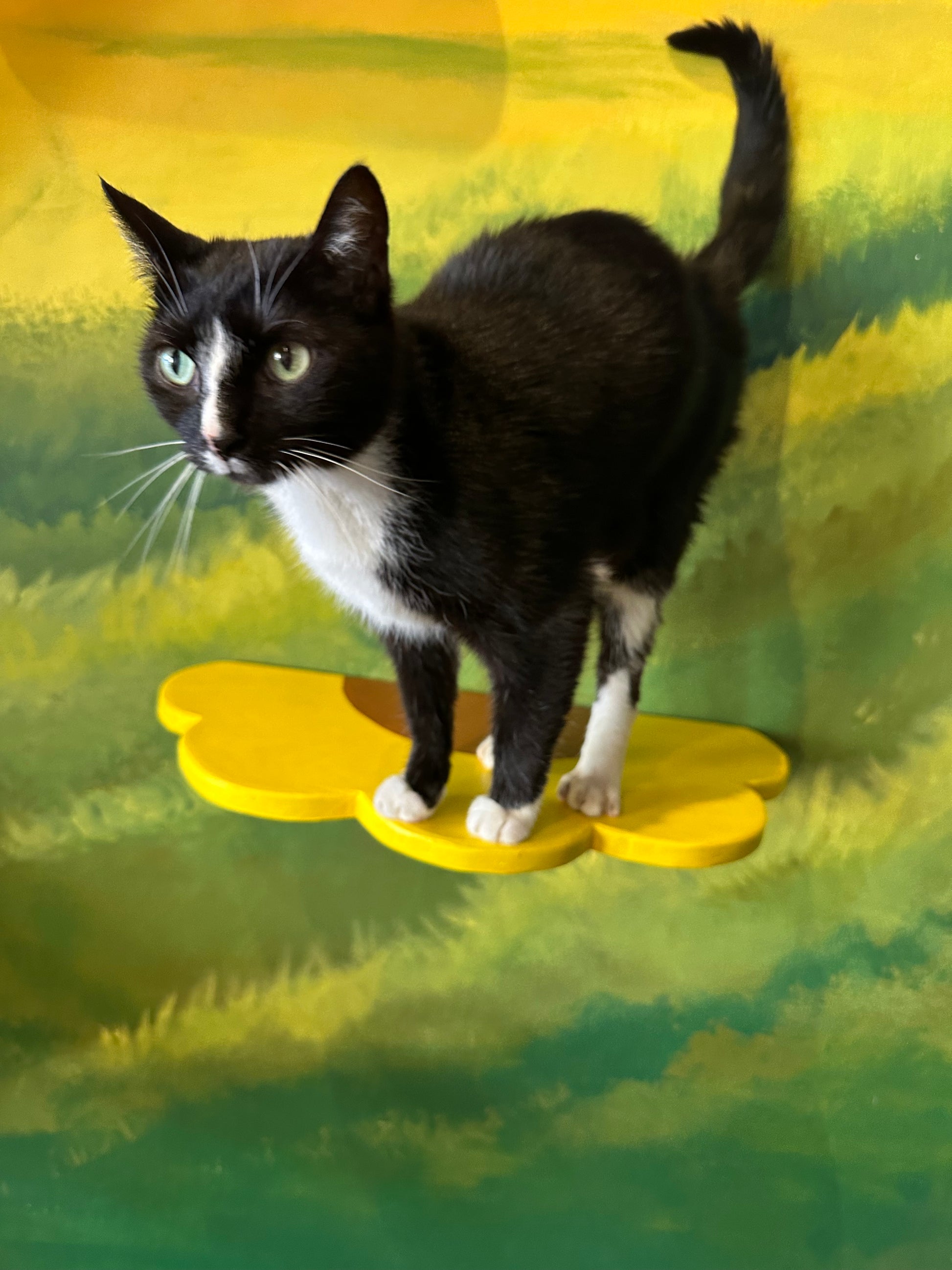 Meet Bebo, our charming seven-year-old tuxedo gentleman. This lovebug is a little puzzled about his new home at the cafe, but don't let that fool you—he's all affection and cuddles. Bebo lives for lap time and will happily settle into your arms for hours of purring contentment. If you're looking for a devoted companion who just wants to be close to you, this sweet boy is your purrfect match.
