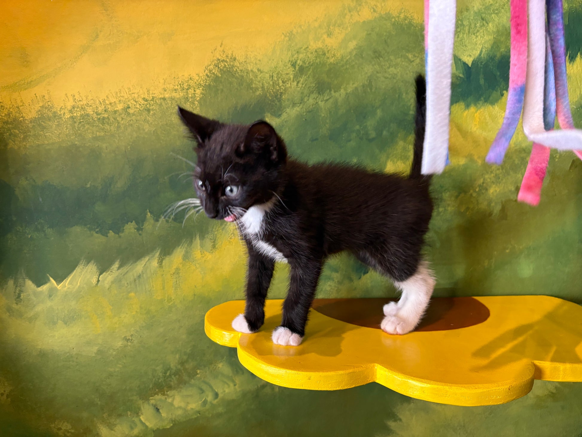 Meet Jackson, the ultimate cuddle companion! This sweet kitten thrives on attention and affection, making him the purrfect playmate for anyone seeking a loving friend. Jackson's playful spirit shines brightest when he's surrounded by other cats and humans who appreciate his snuggly nature. If you're looking for a kitten who'll shower you with purrs and endless entertainment, Jackson is ready to steal your heart and become your new best friend.