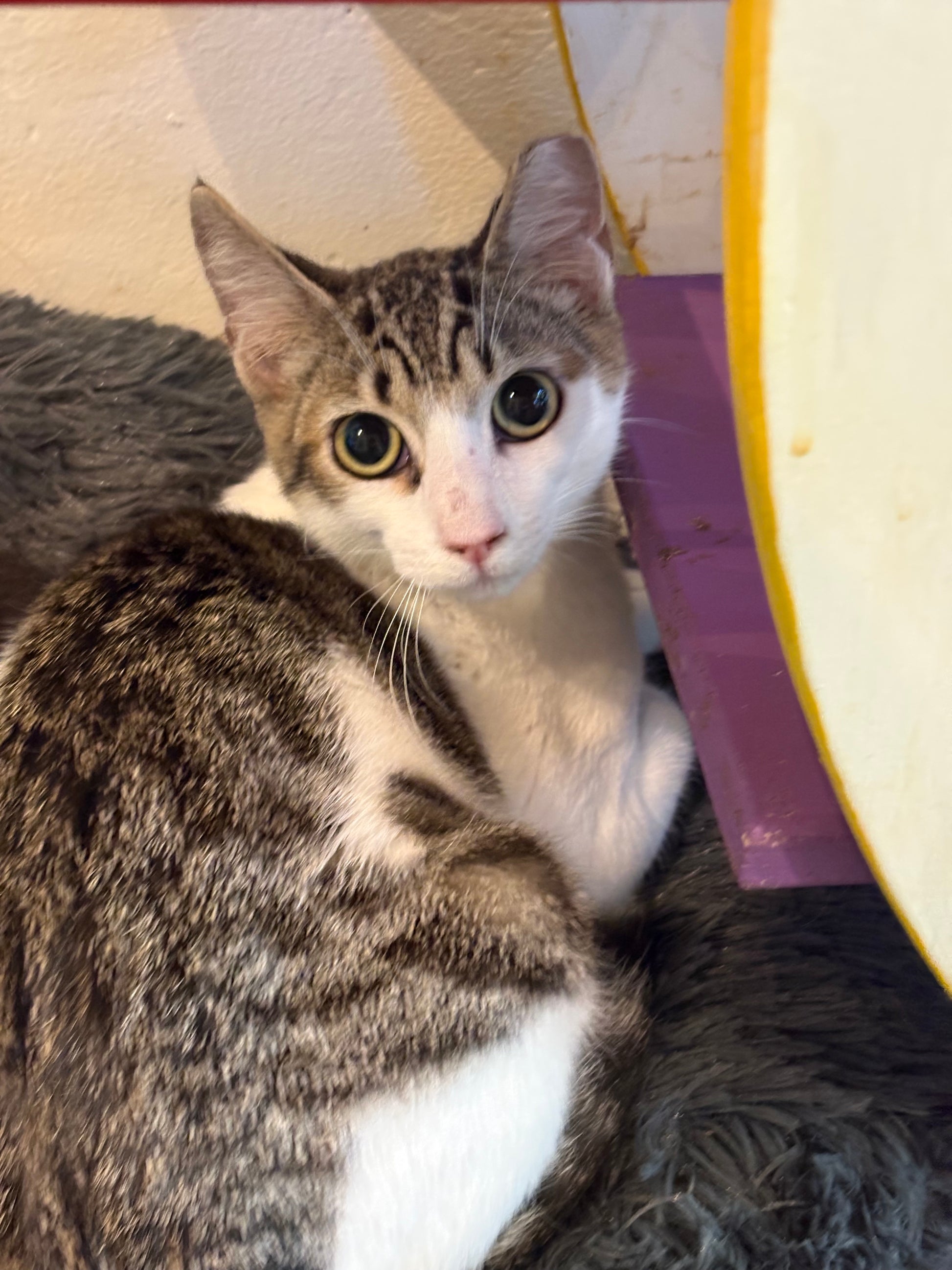 Meet Nano, a charming five-month-old girl with curious eyes always on the lookout for new adventures. Calm and quietly observant, she loves to watch the world unfold around her. This sweet kitty is ready to find her furever home where she can bring endless joy and gentle companionship. Could Nano be looking for you?