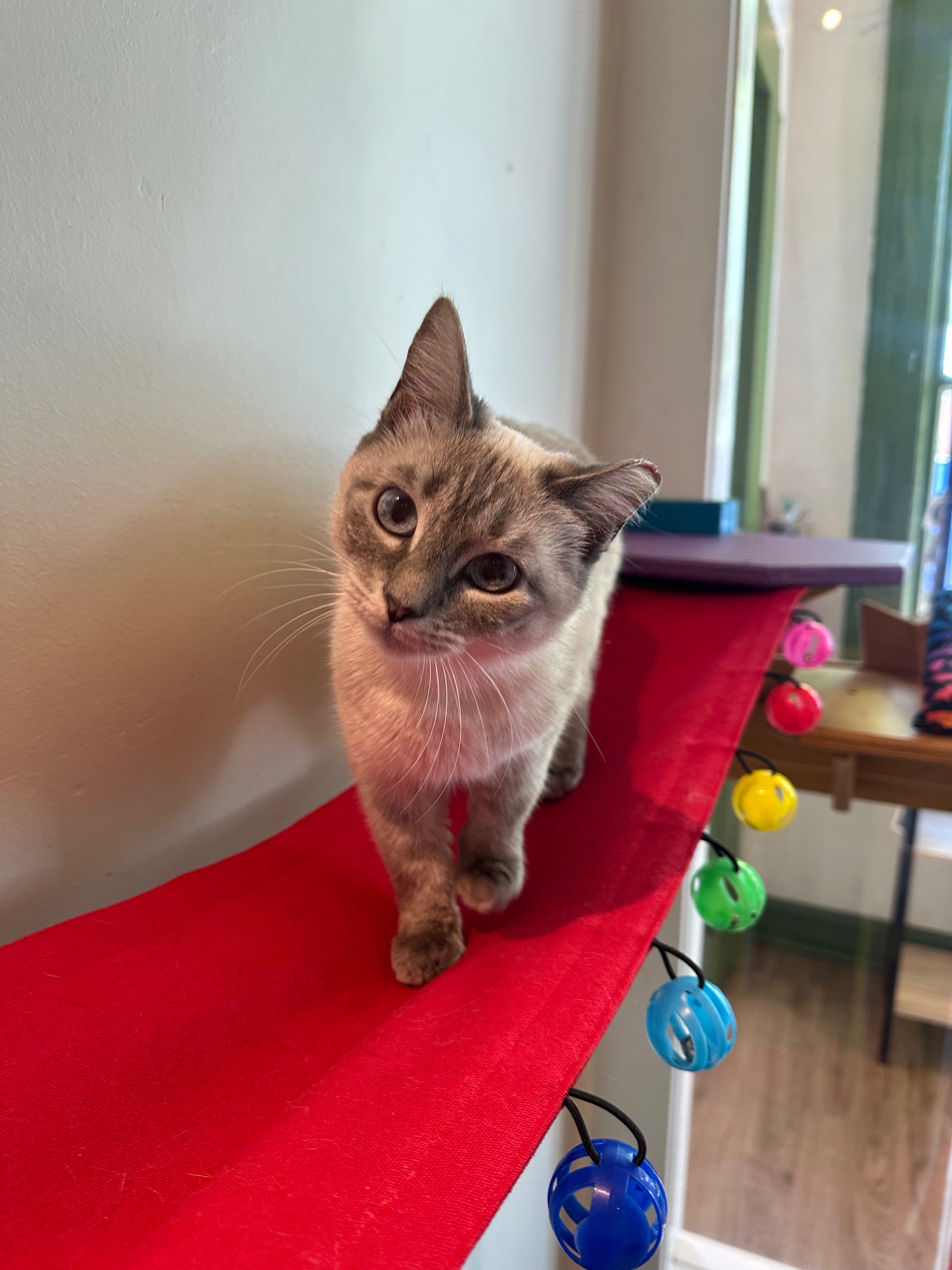 Meet Sagwa, our sweet and shy girl who's still adjusting to her temporary home. She's slowly coming out of her shell and blossoming into her true self. Sagwa is looking for a patient, caring person who can help her build confidence and trust at her own pace. With gentle encouragement and plenty of love, she'll reward you with affection and companionship. If you have the patience to help this special girl flourish, Sagwa could be your purrfect match.
